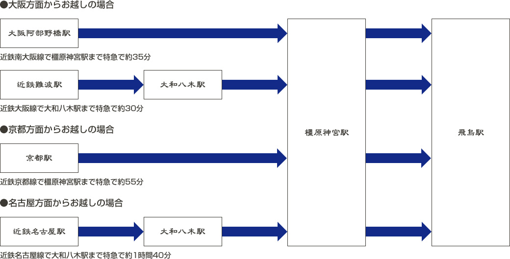 また、明日香村内を通るバス「かめバス」は飛鳥駅と橿原神宮前駅からご利用いただけます。